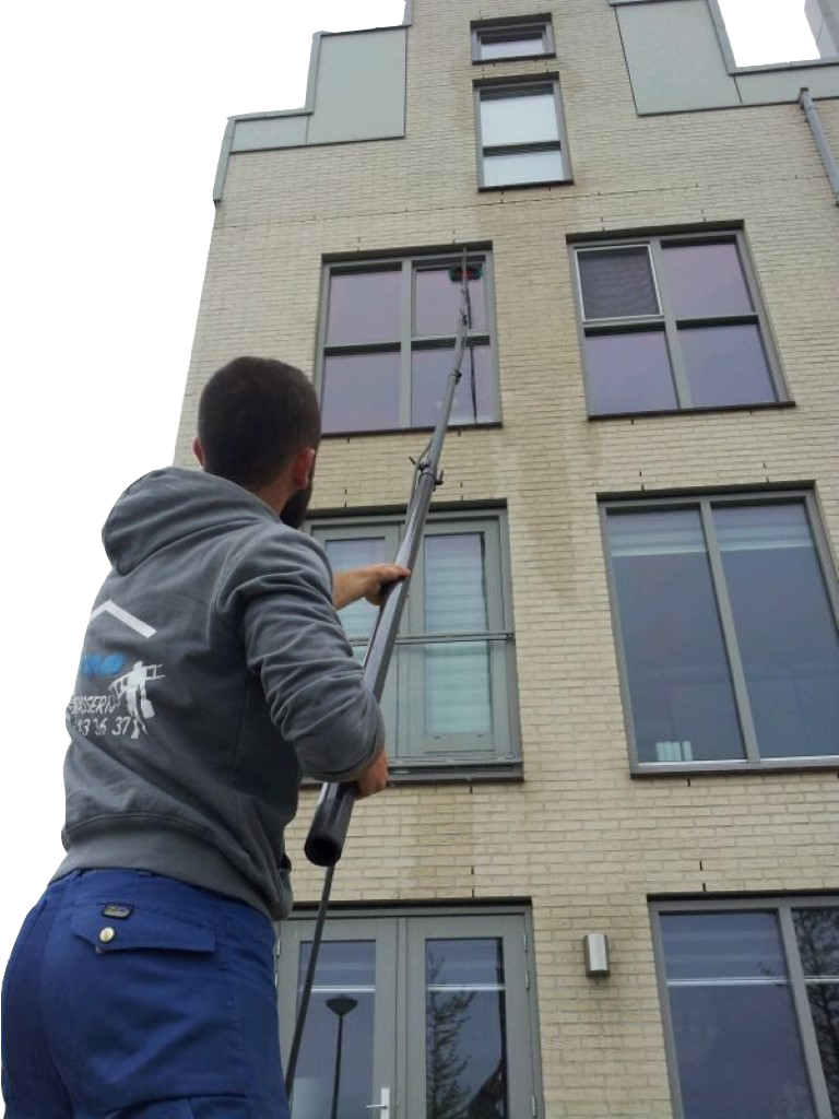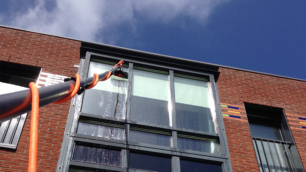 Ook de moeilijkst bereikbare ramen worden door ons gereinigd. Wij zijn gespecialiseerd in telescopische (Tucker) glasbewassing.